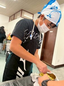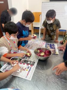 ピーラーでは難しかった細かい皮の剥き残しは、中高生が丁寧に仕上げてくれました。年齢に応じた役割分担でお互いをサポート出来ていました。