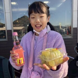 ご当地ガチャにも挑戦し、カブトガニのフィギュアをゲットして喜ぶ姿も見られました! また、「お家の人に買って帰りたい」とマスカットを選ぶ子もおり、思い思いの目的を持って買い物に参加していました🍇