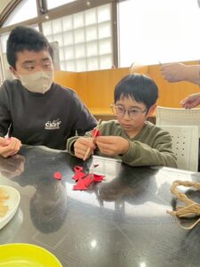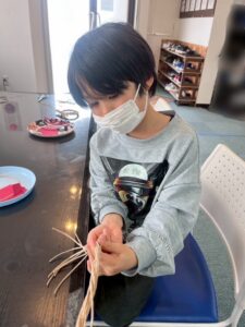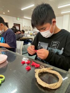 しめ縄のパーツを一つひとつ丁寧に組み上げていく姿は、まるで小さな職人さんのようでした。