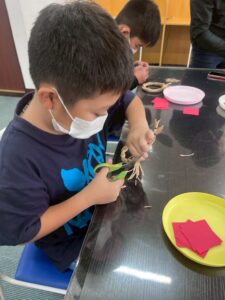 指先を細かく使う作業が多く、「ここはこうかな?」「難しいけど楽しい!」と、みんな真剣そのもの。
