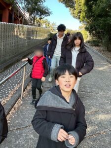 三之丸校は徒歩で、手城校は車で向かいました。道中も広がらずに歩き、神社の厳かな雰囲気を感じながら、ルールを守って参拝することができました。