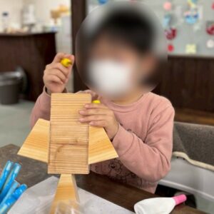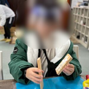 作業が始まると、周囲の音も気にならないほど集中し、時間を忘れて黙々と手を動かす姿が印象的でした。完成した作品はどれも個性にあふれ、「見て!」と誇らしそうに見せてくれる場面も。出来上がった作品を大切に抱え、嬉しそうに持ち帰る姿から、達成感と満足感がしっかり伝わってくる制作活動となりました。